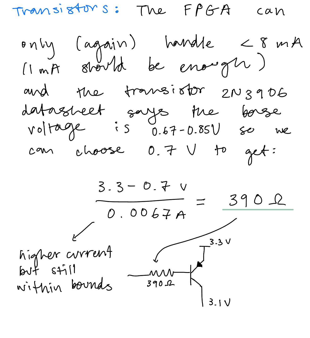 Current calculations for PNP Transistors, and Dual Seven Segment Display remained the same from Lab 2. See the calculations below in Figure 1. An additional 680 Ohm resistor was added as pull downs for the rows.